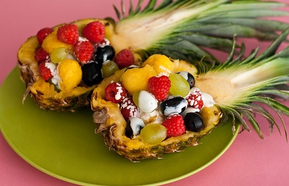 Самым лучшим завершением плотного застолья станет десерт из фруктов. Главное – подобрать яркие сочные фрукты и аппетитно их разложить. Для этого отлично подойдут половинки дыни, ананаса и арбуза.