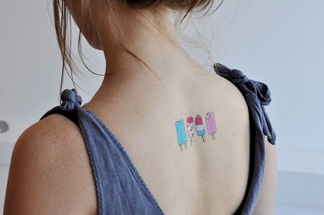 Это всем известный с детства вид татуировок. Наверняка, многие помнят жвачки, в которых были такие черно-былые и цветные небольшие тату. На фантиках была написана инструкция по их применению.